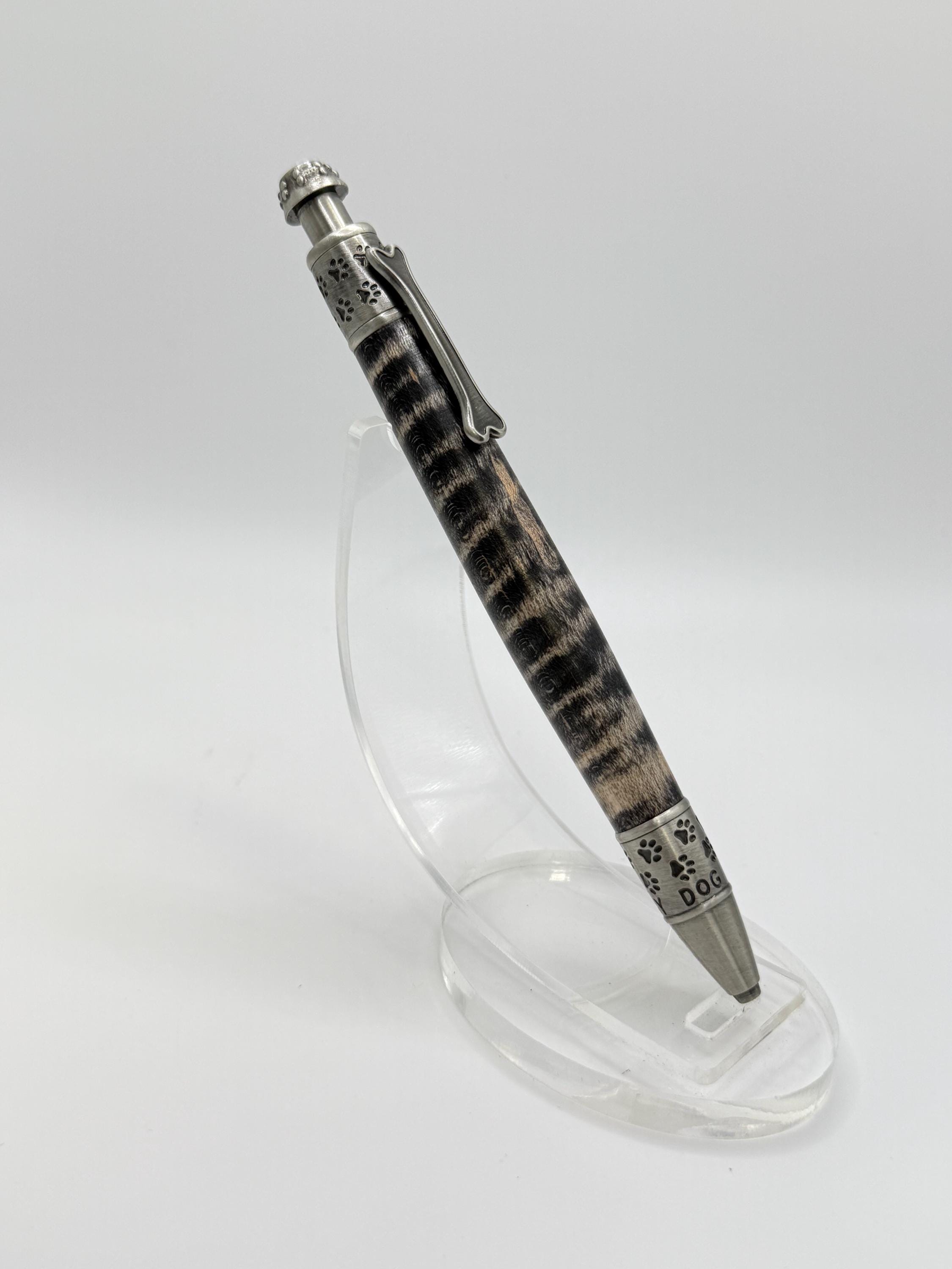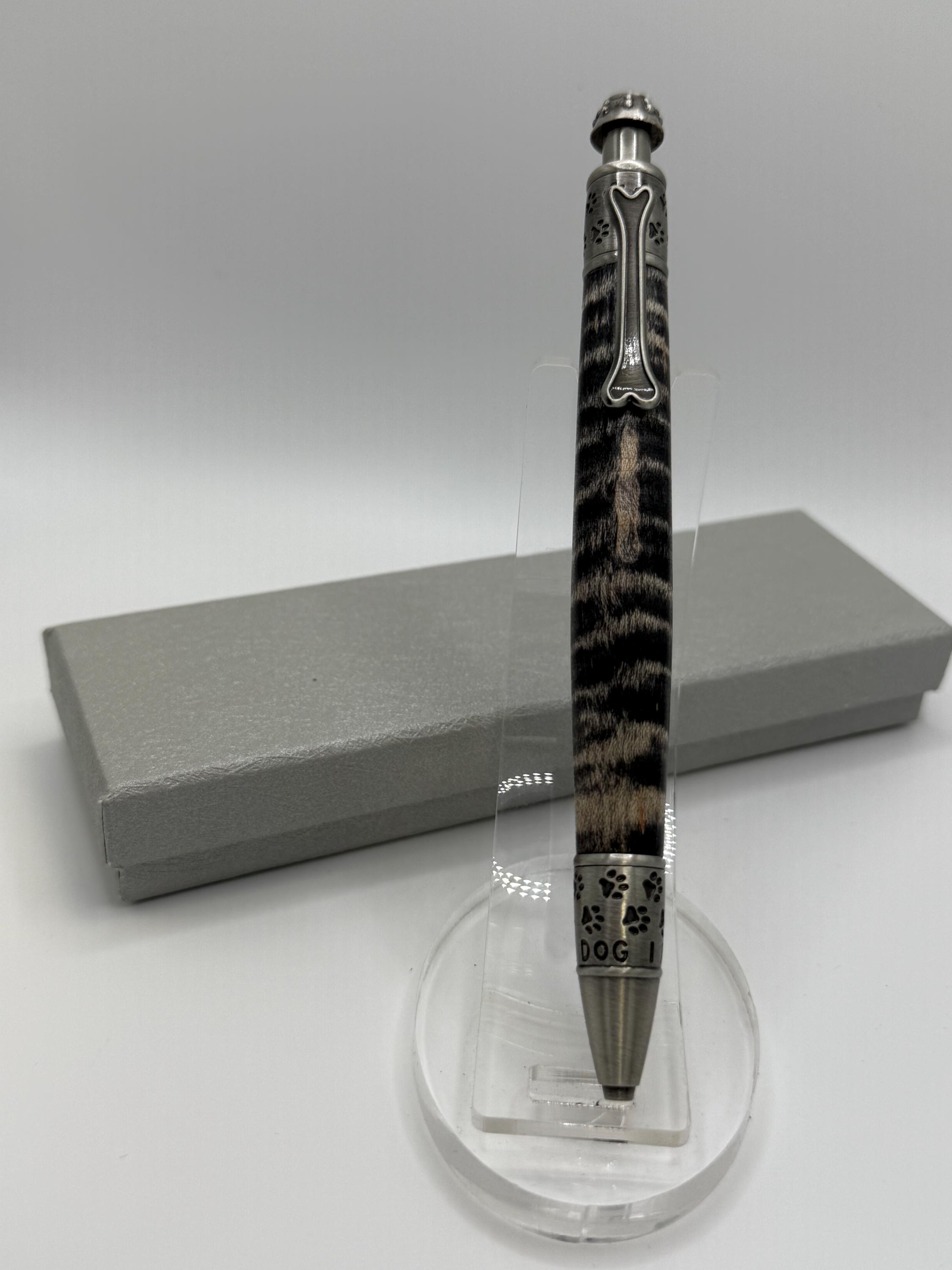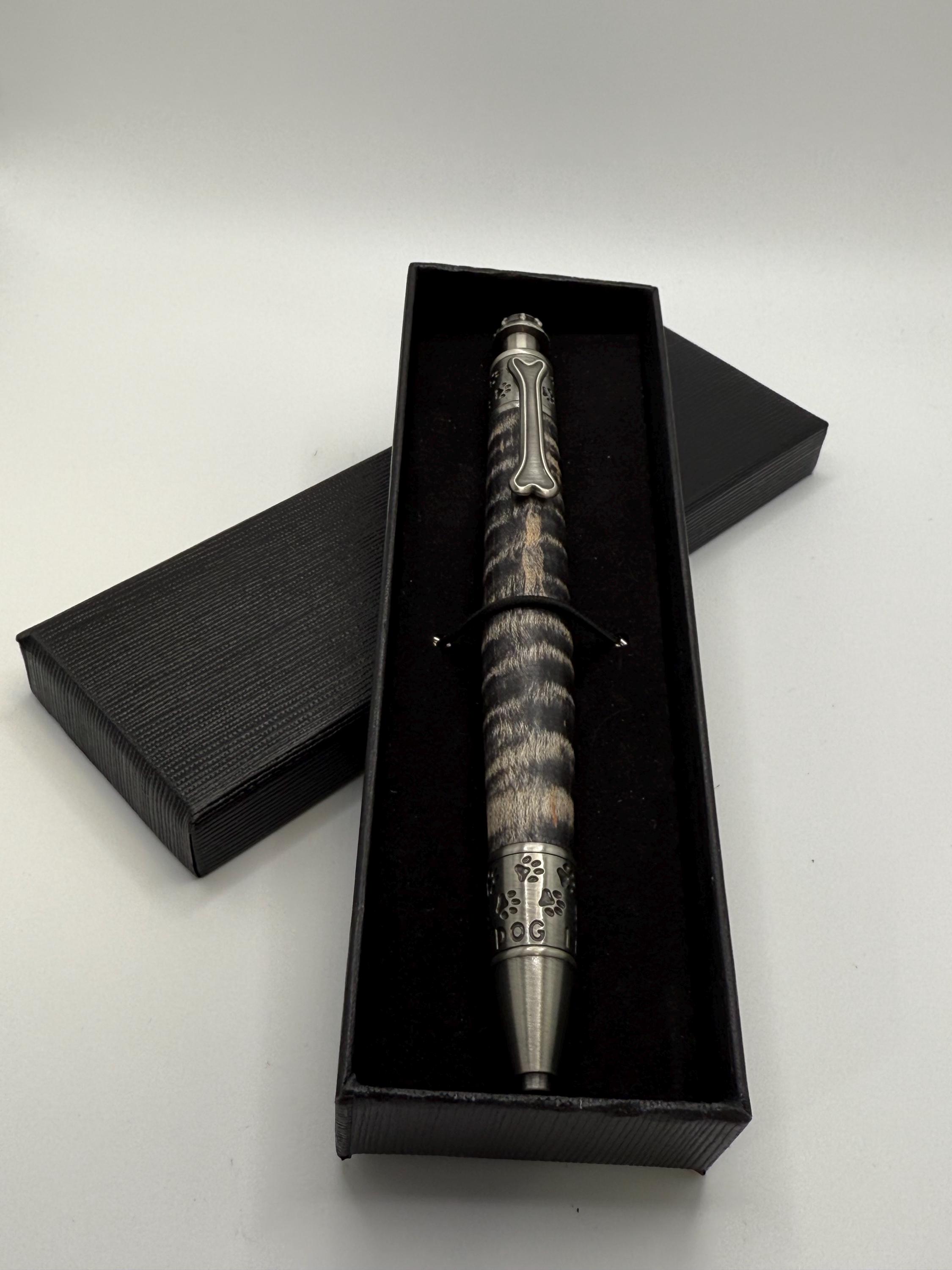 Dog Theme Ink Pen Made From Curly Maple and highlighted with Sanded Black Stain!