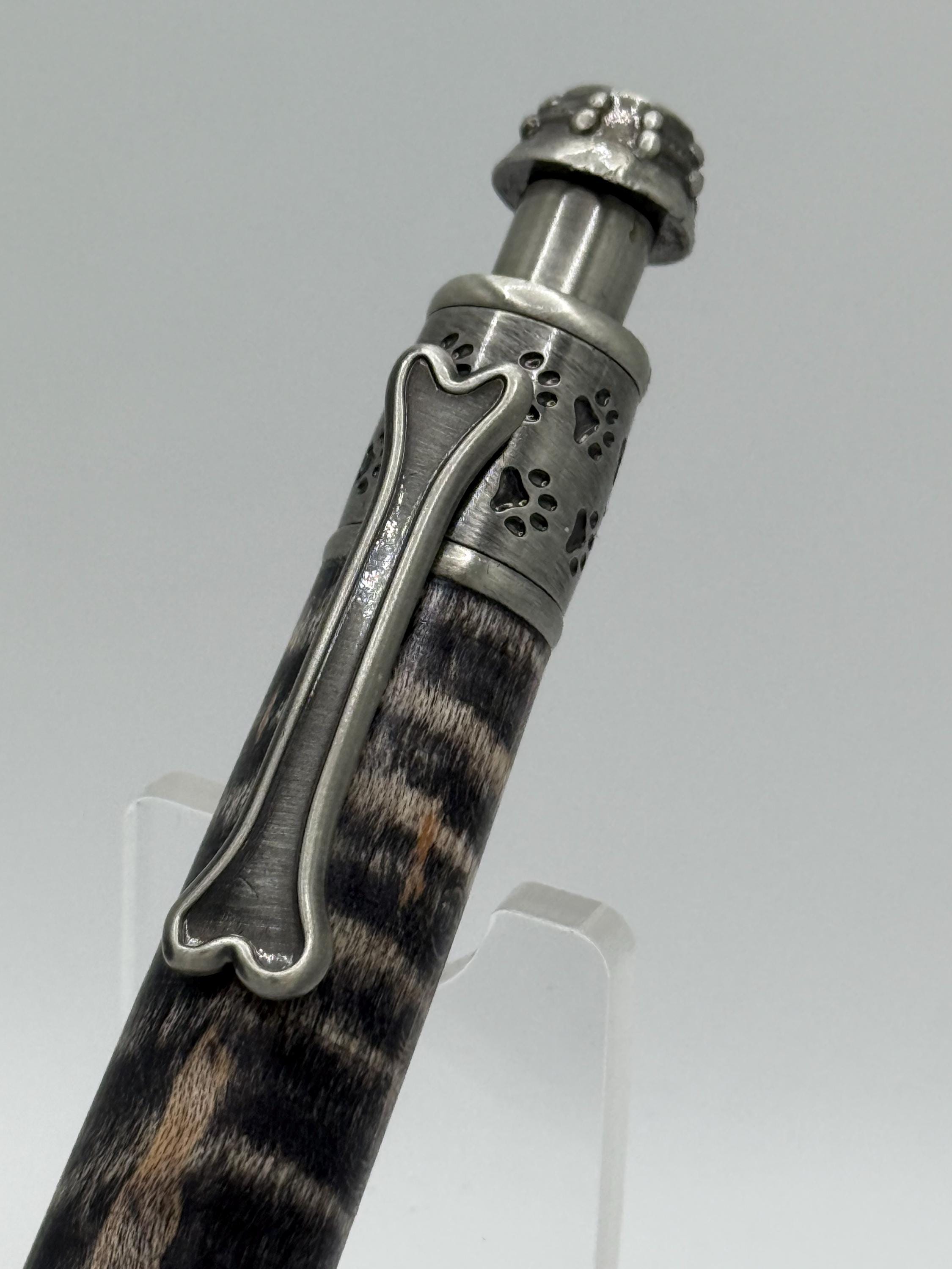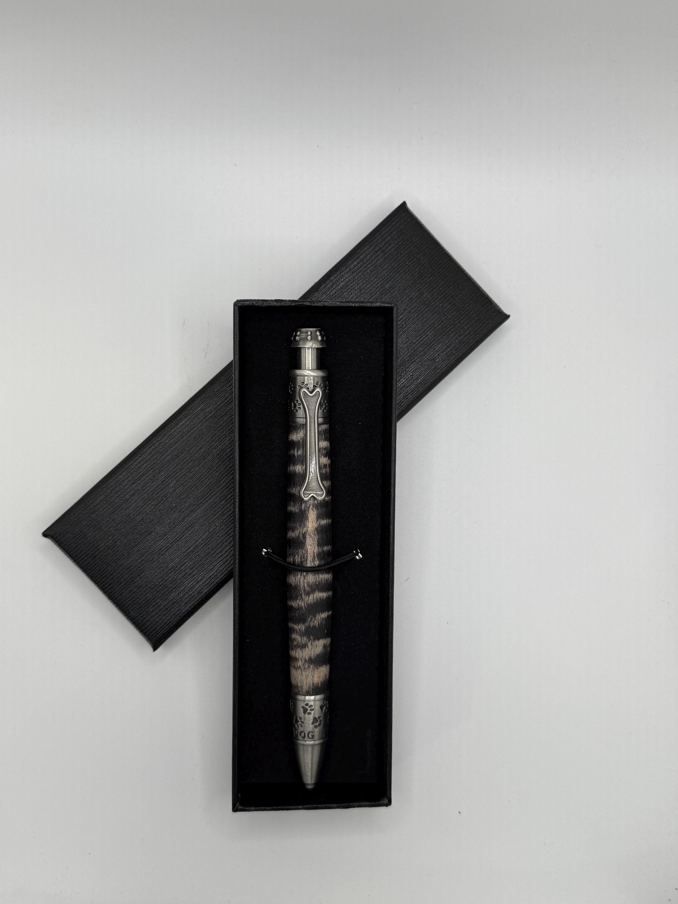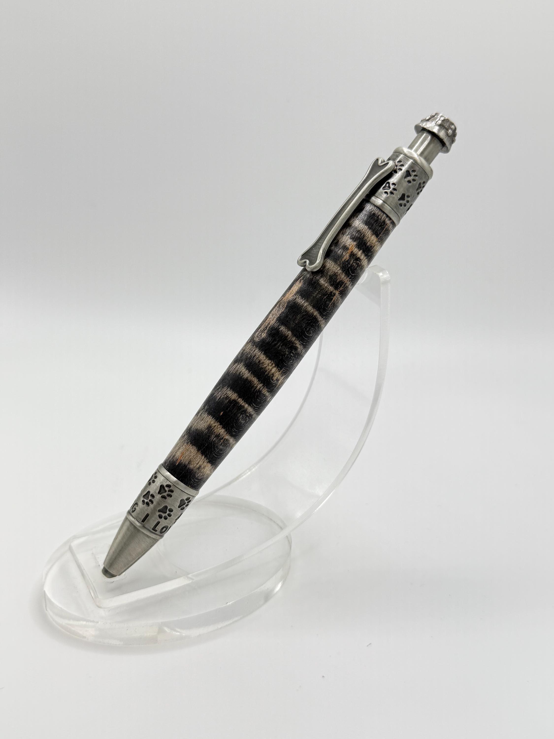 Dog Theme Ink Pen Made From Curly Maple and highlighted with Sanded Black Stain!