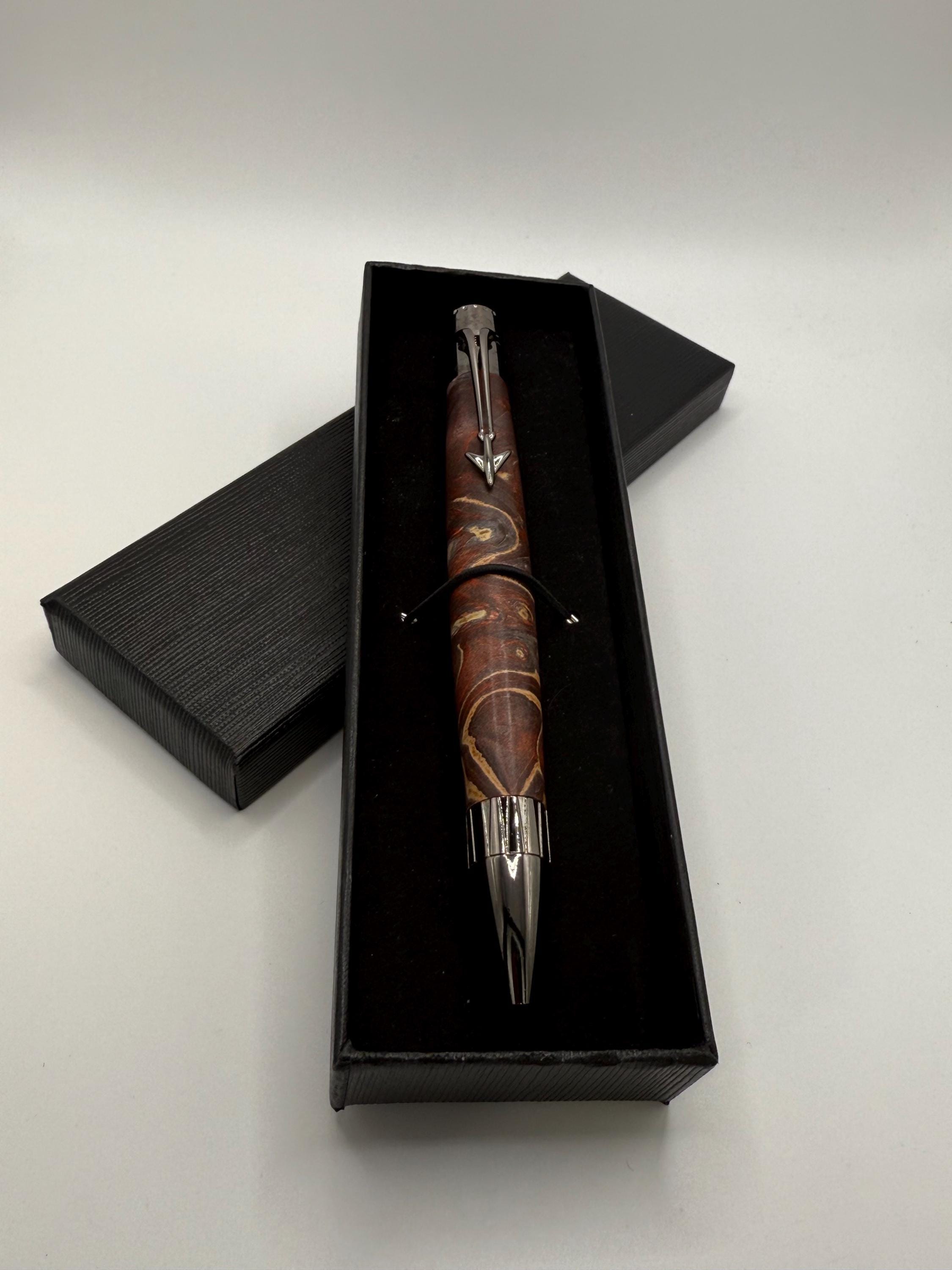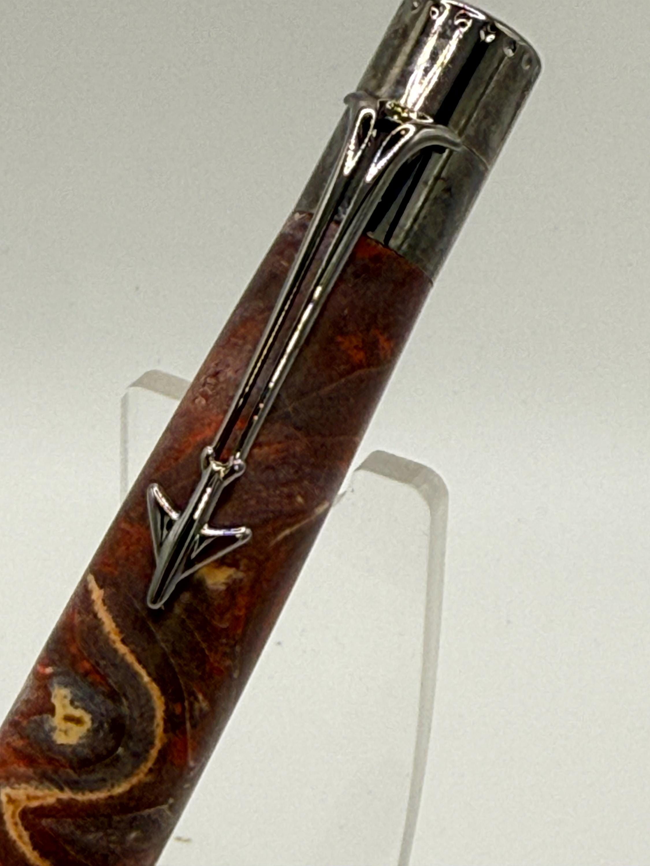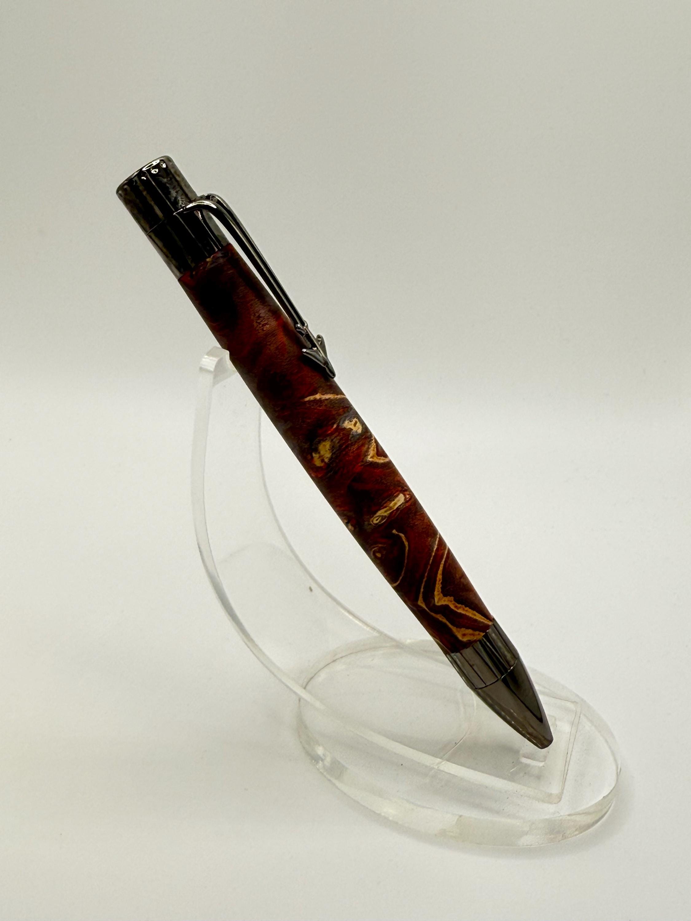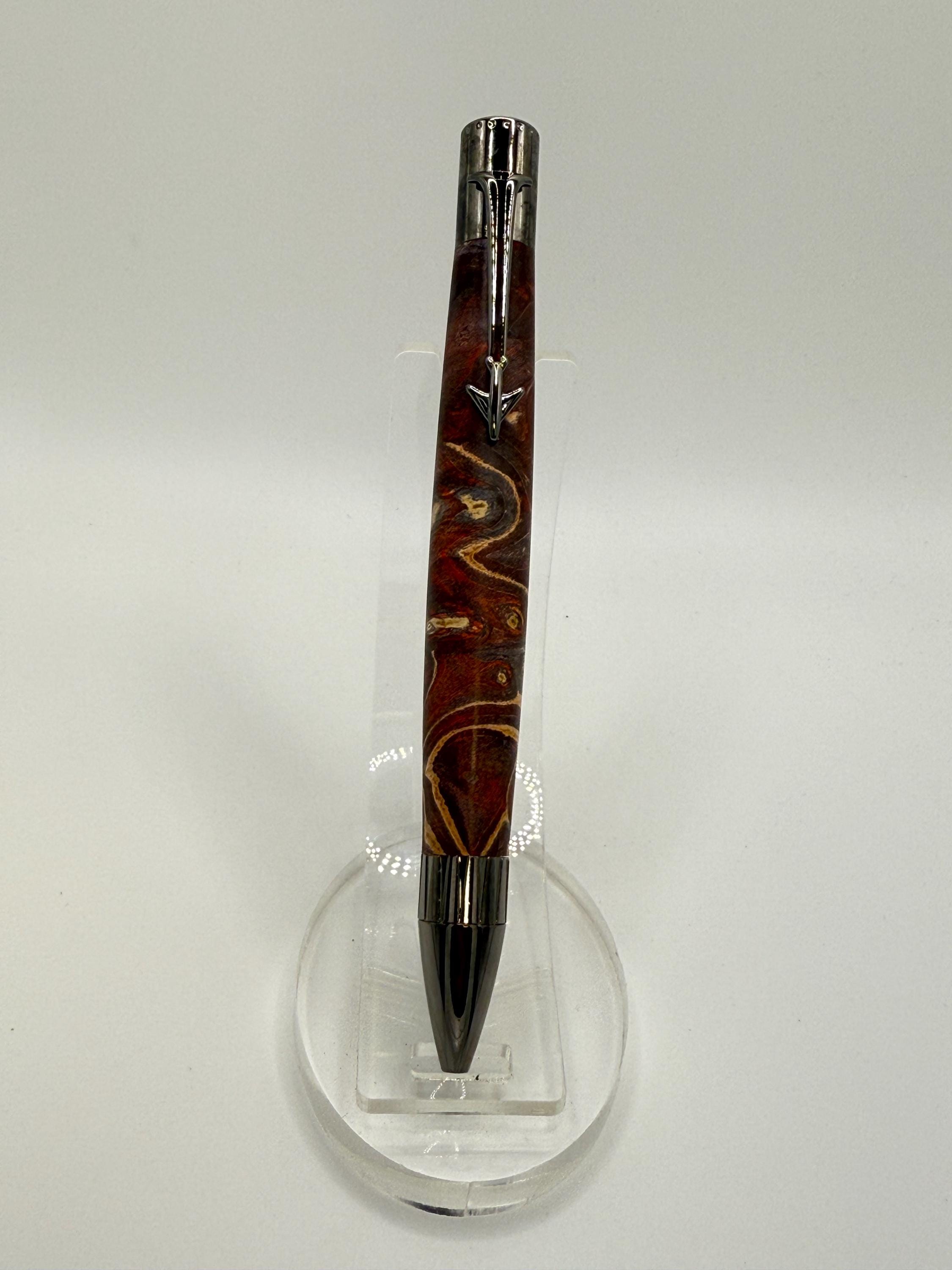Beautiful Jet Aircraft Ink Pen Made Using Double Dyed Maple Burl Wood - Really Cool Wood Grain!