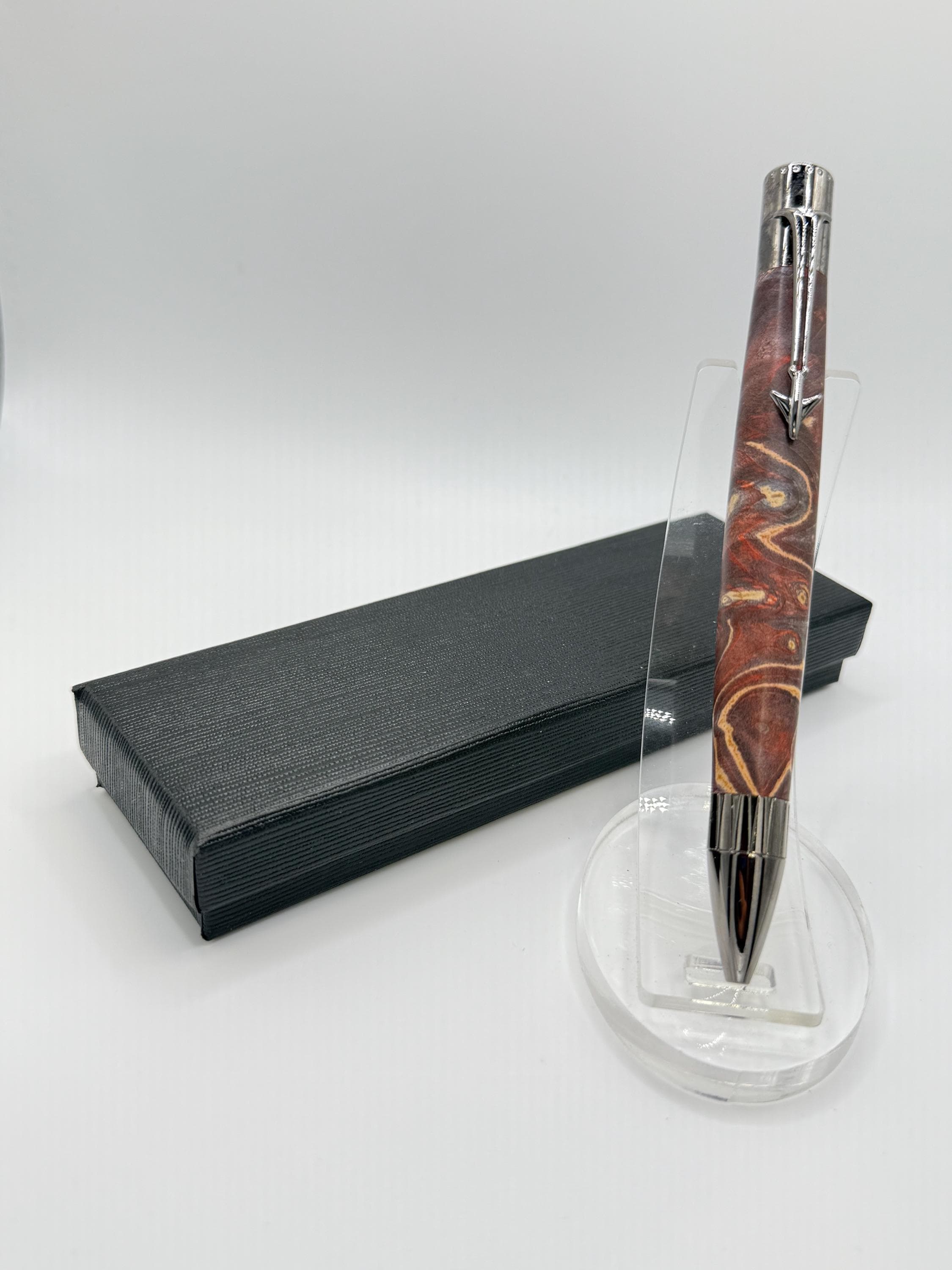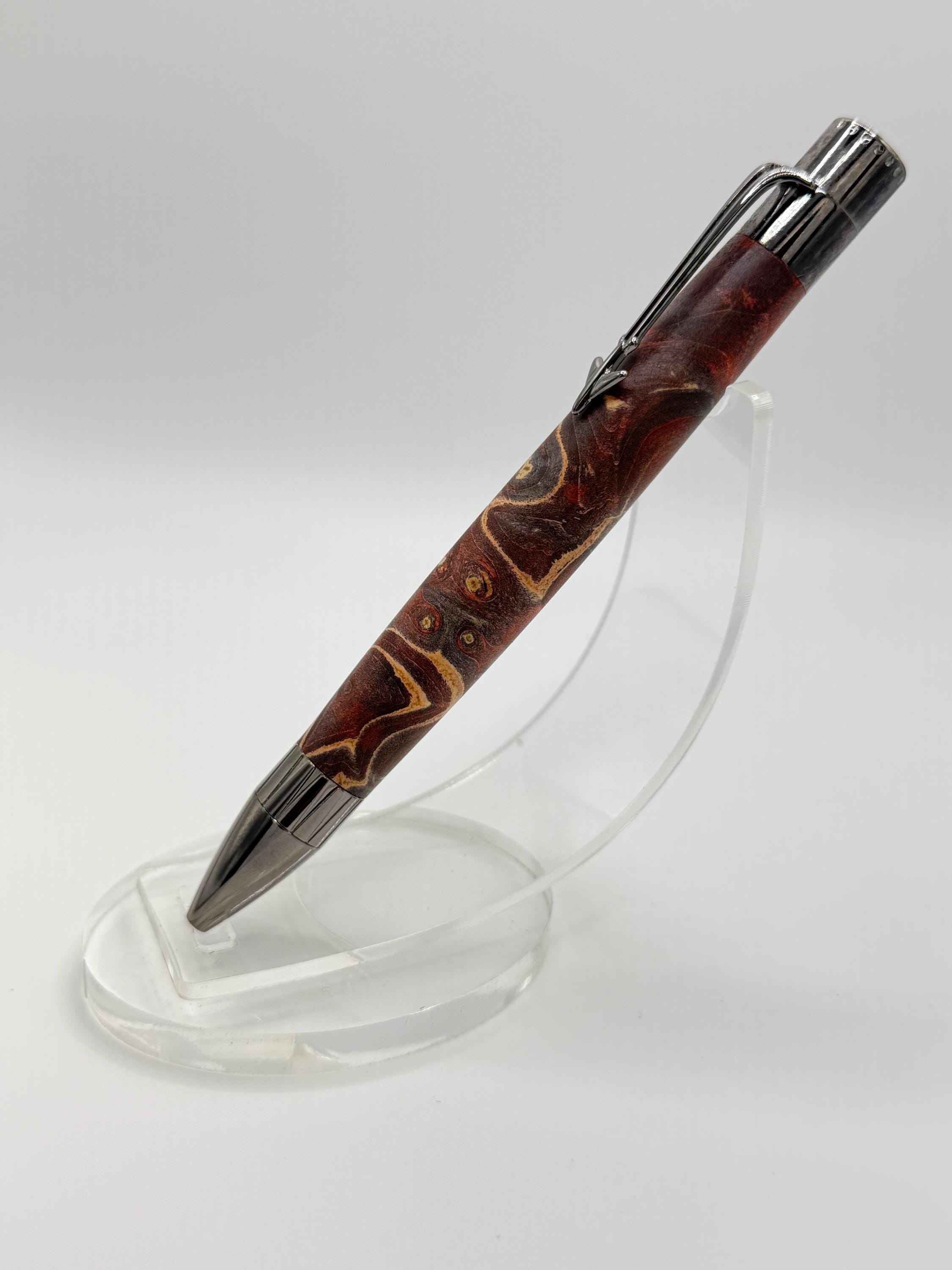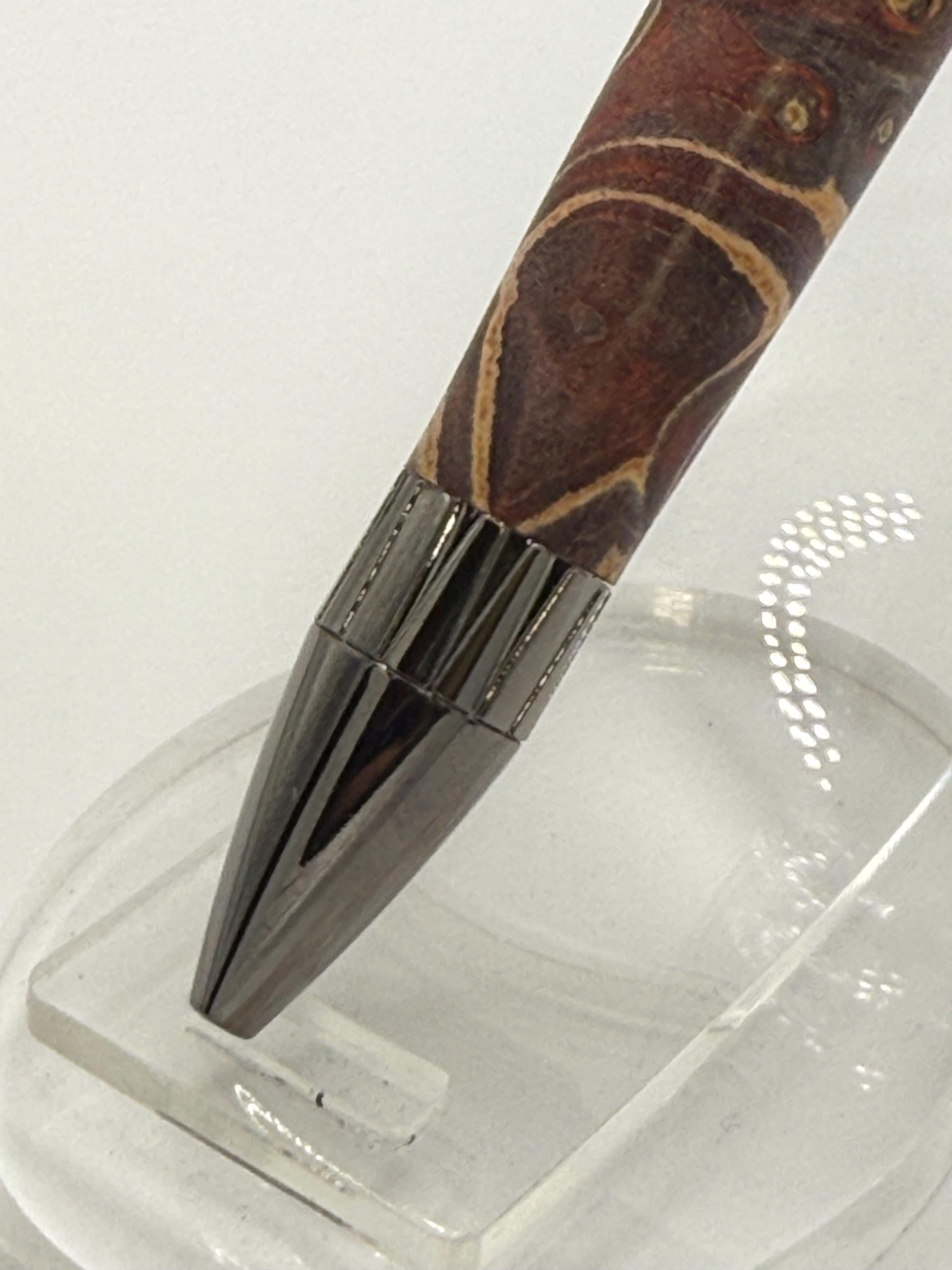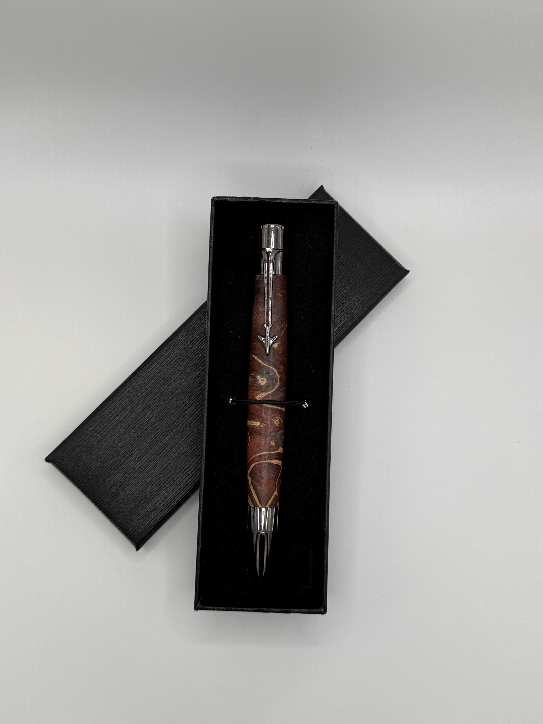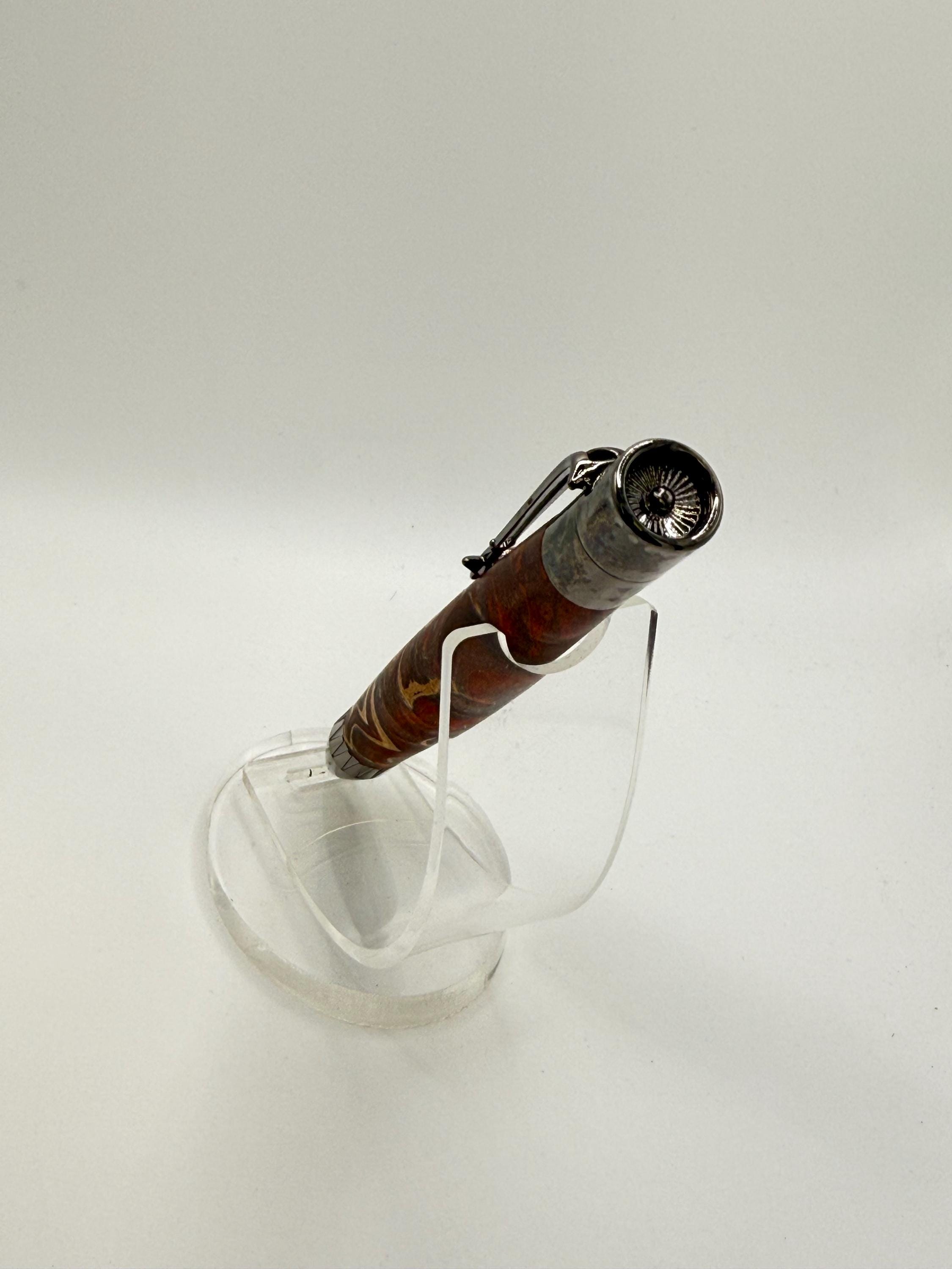 Beautiful Jet Aircraft Ink Pen Made Using Double Dyed Maple Burl Wood - Really Cool Wood Grain!