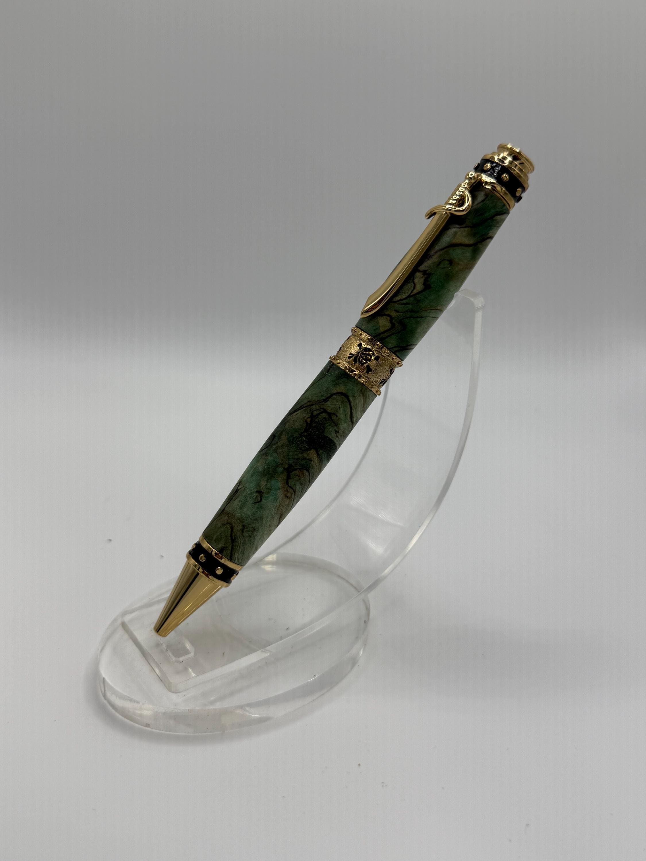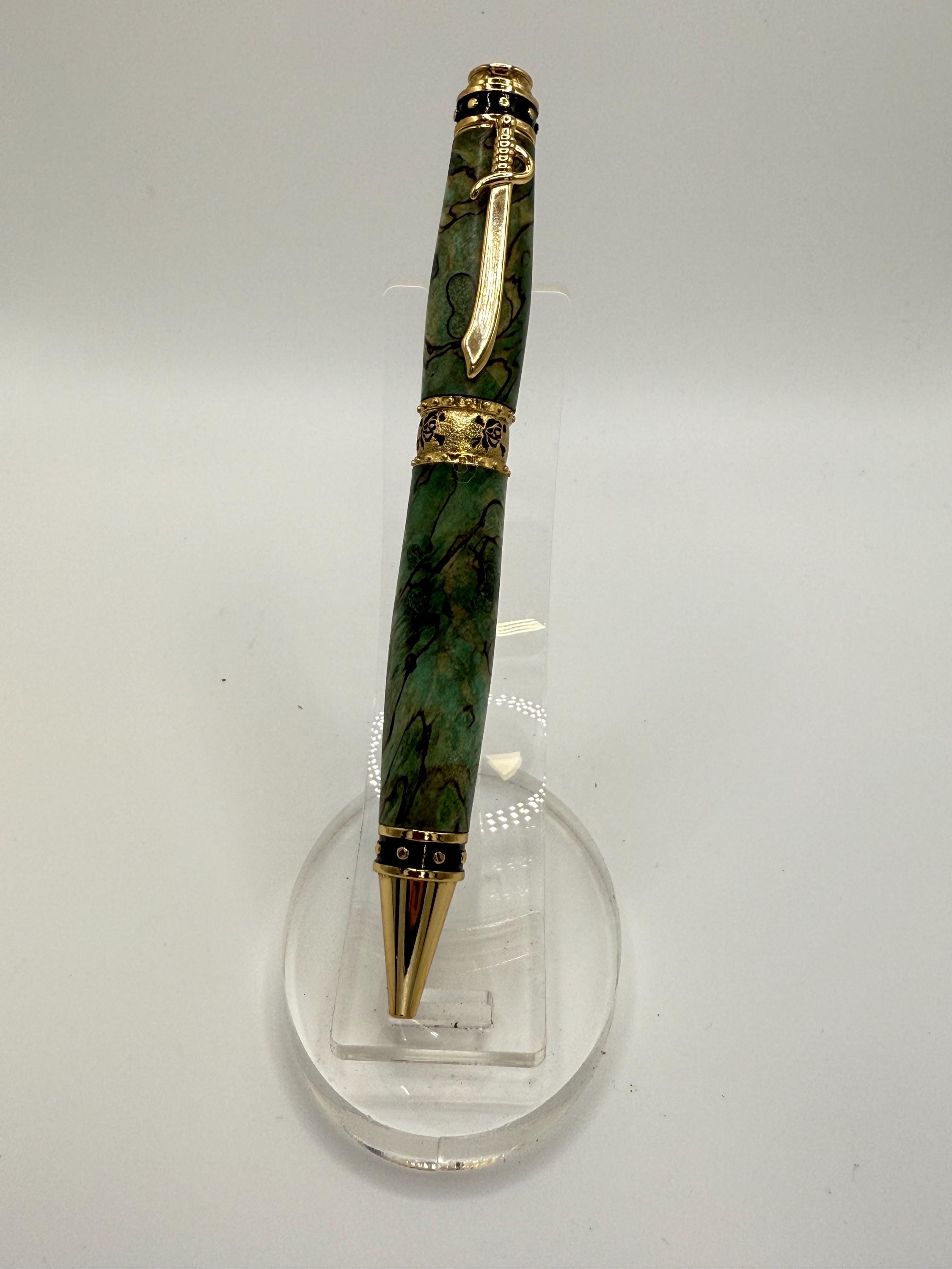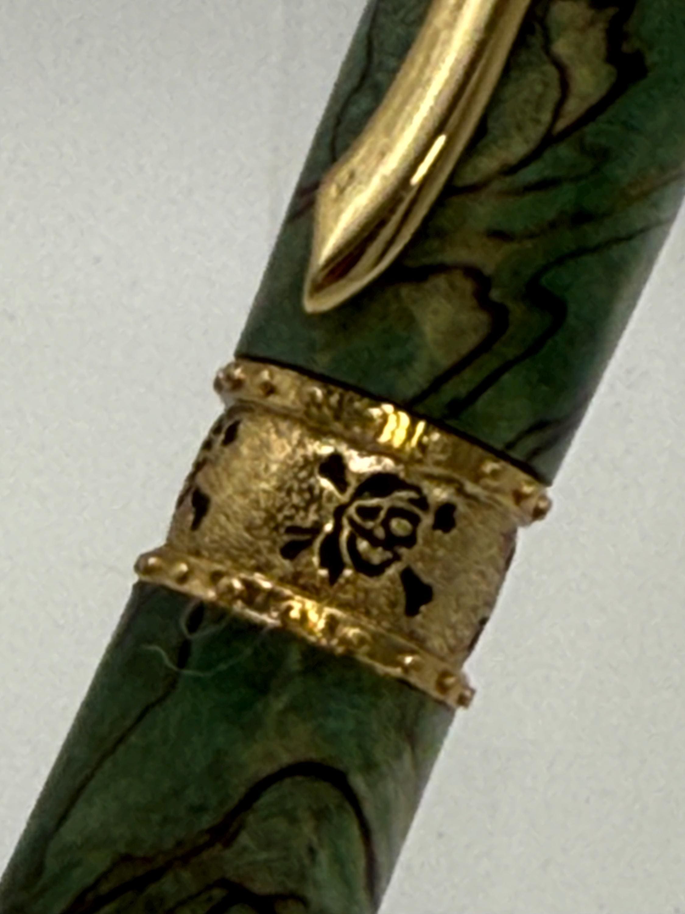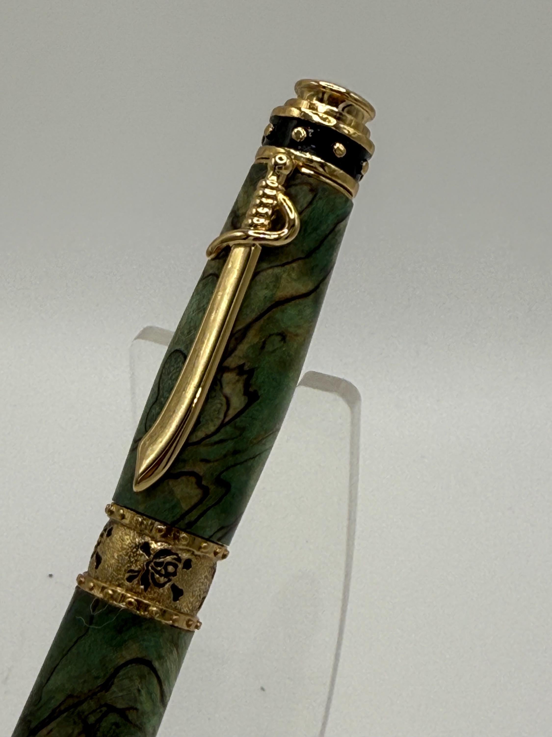 Cool Pirate Theme Pen Made With Green Dyed Spalted Tamarind Wood. One-Of-A-Kind!