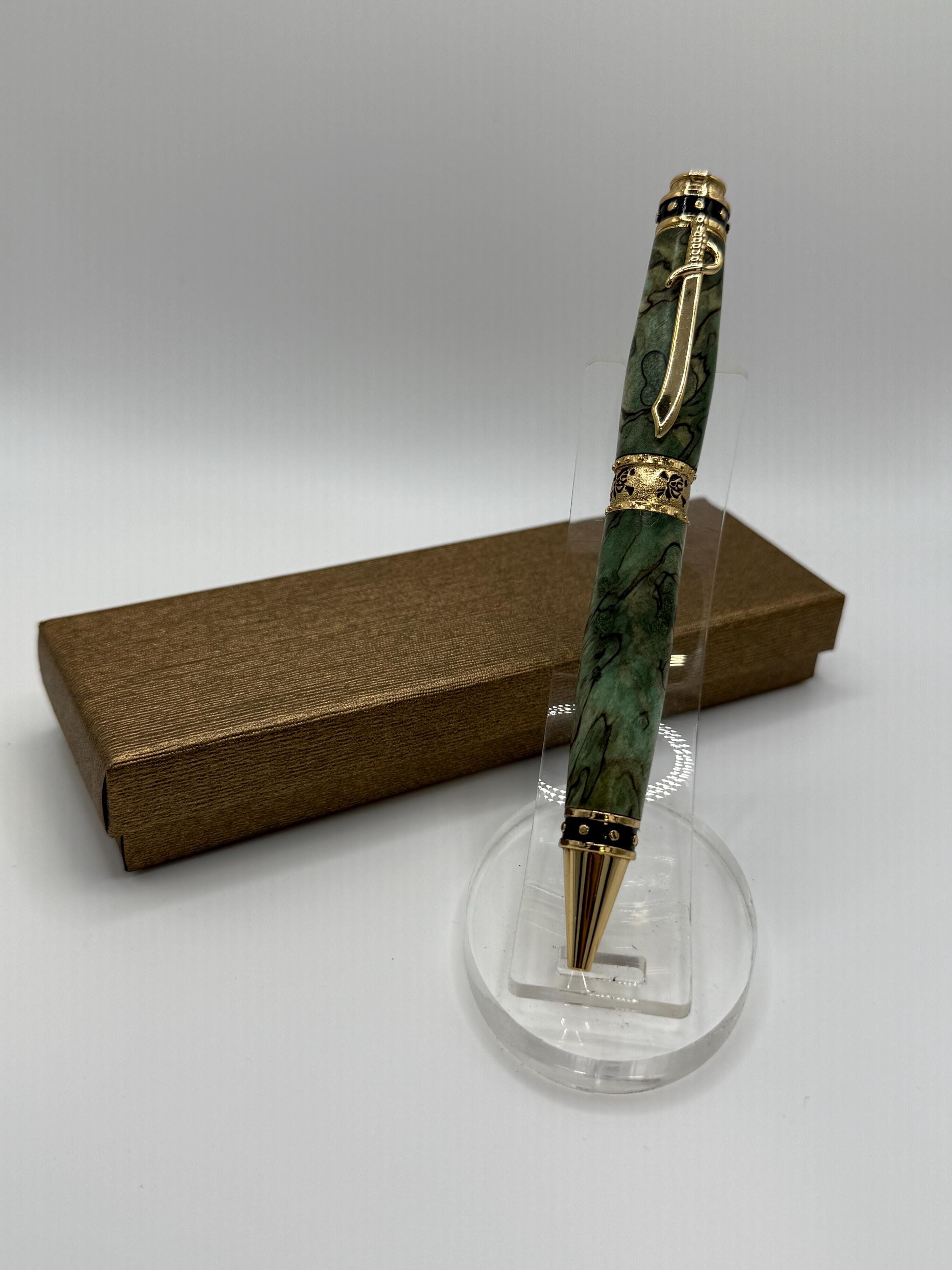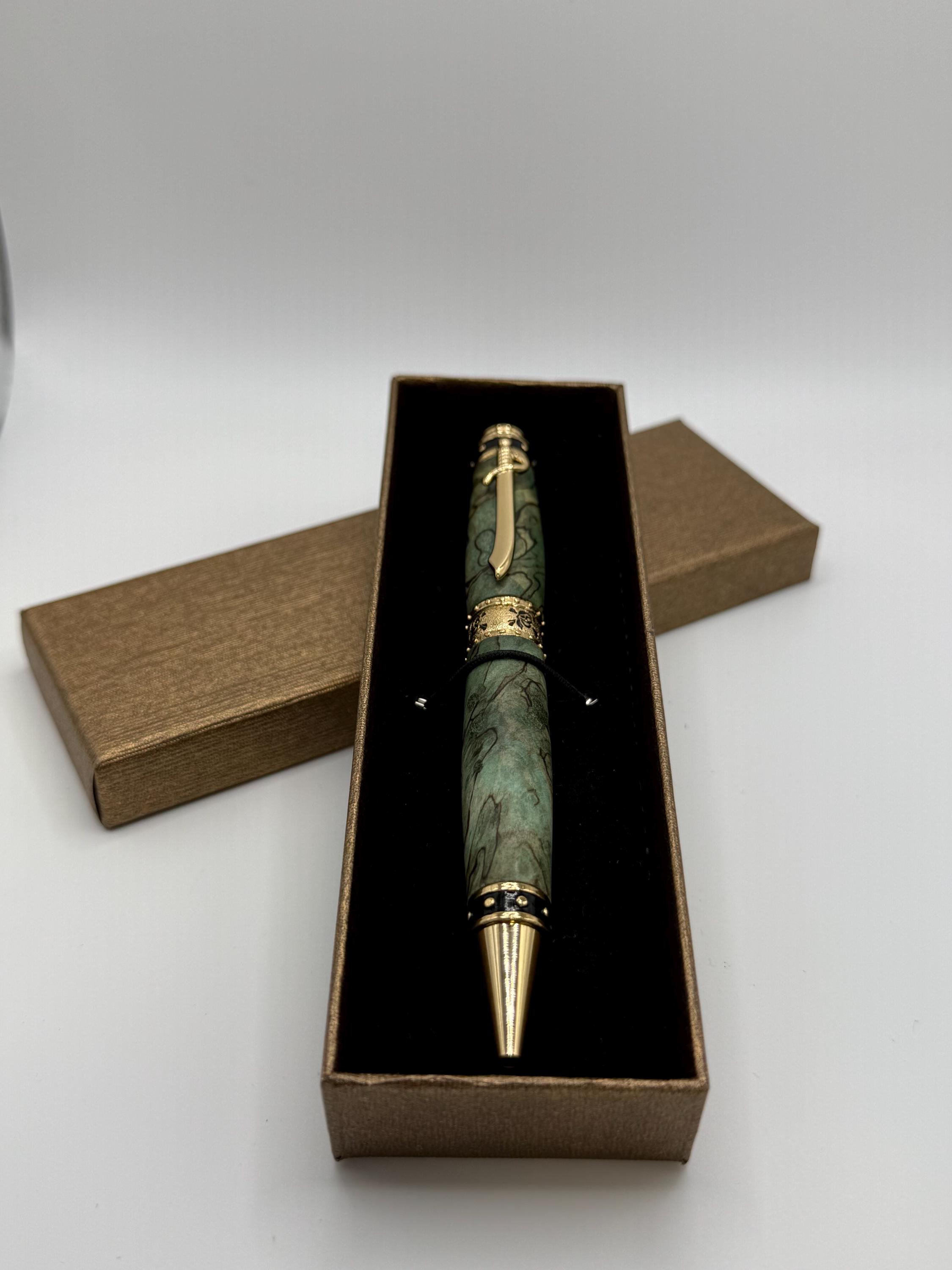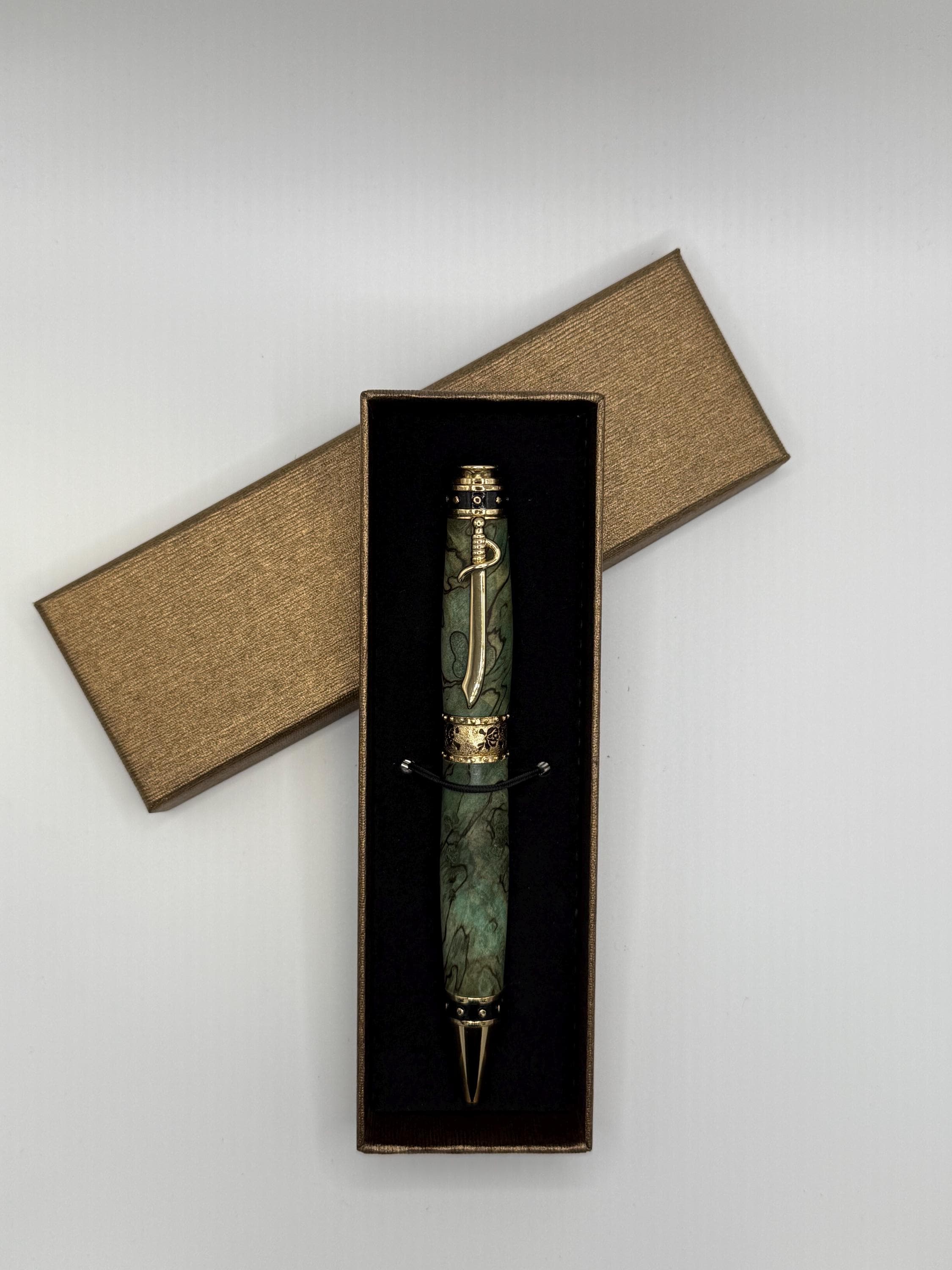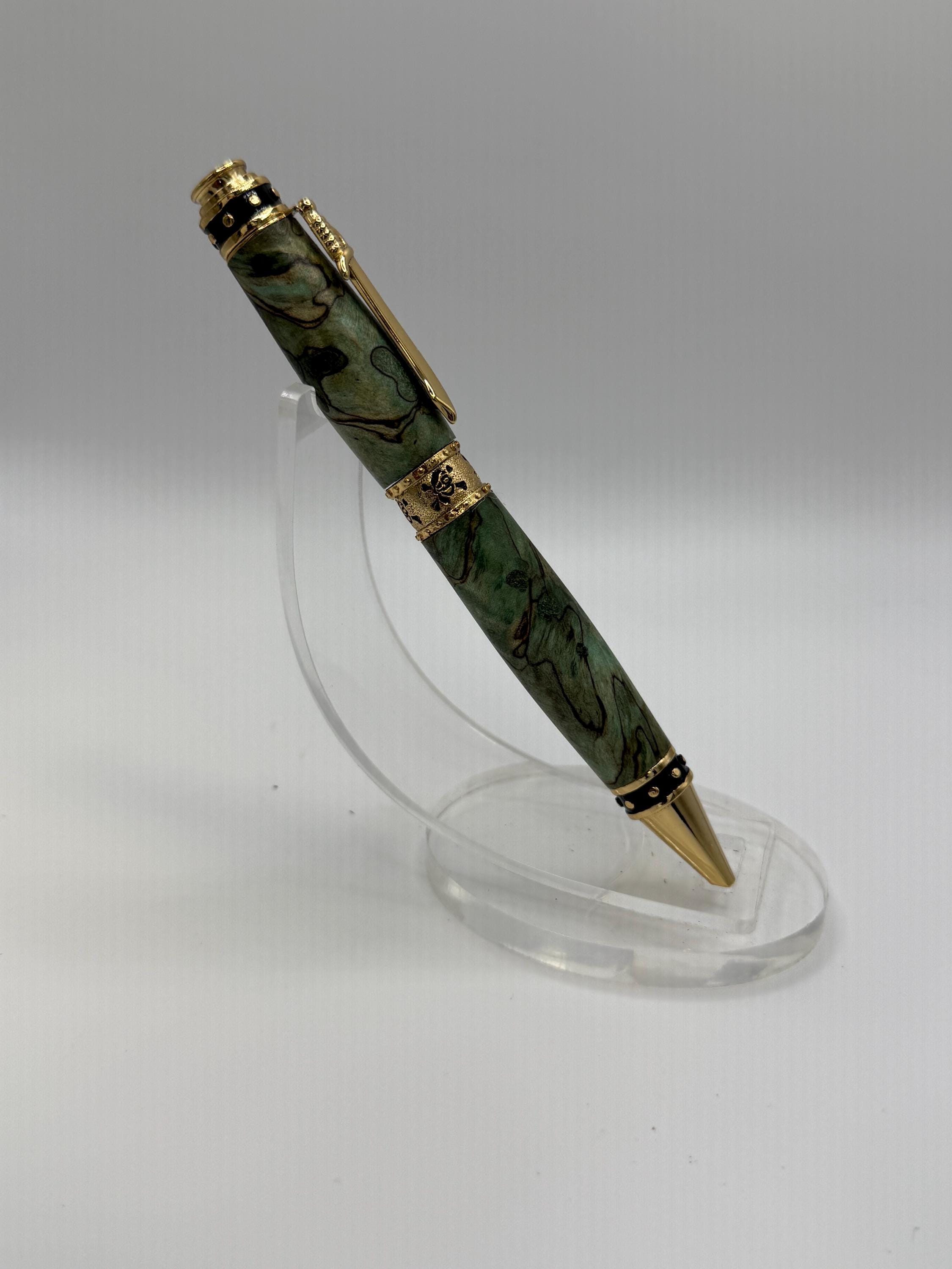 Cool Pirate Theme Pen Made With Green Dyed Spalted Tamarind Wood. One-Of-A-Kind!