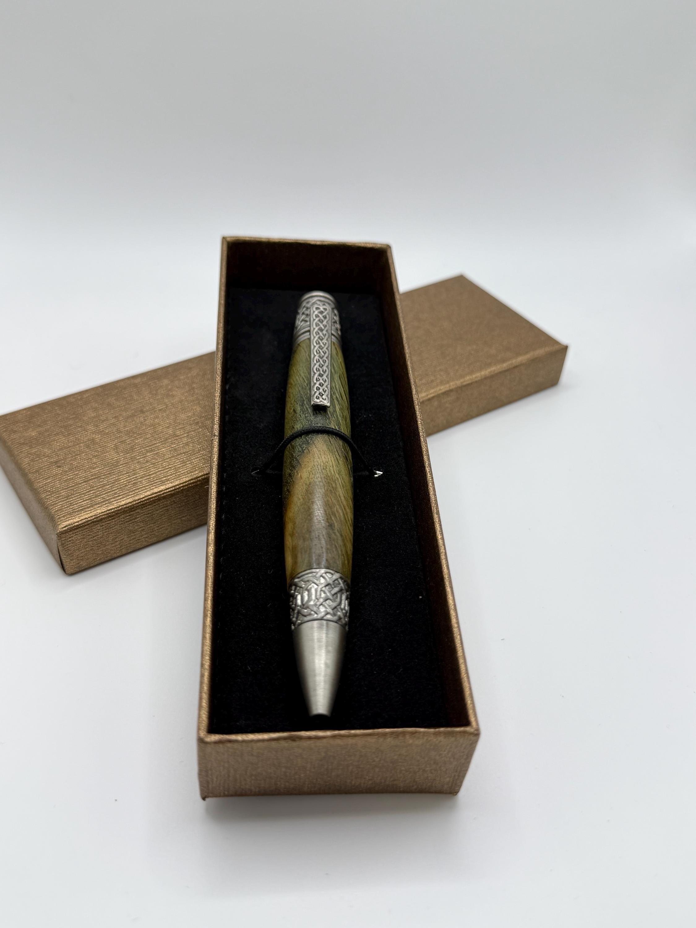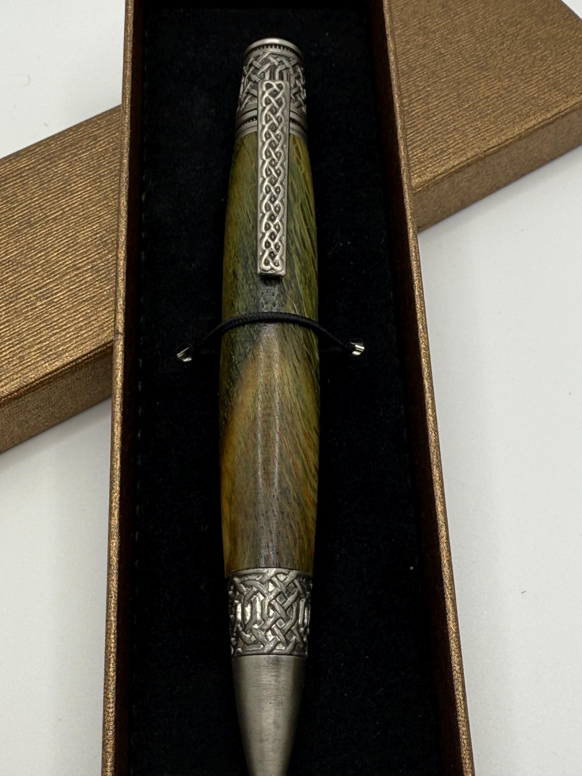 Beautiful Celtic Theme Pen Made With Green Spalted Tamirind Wood.
