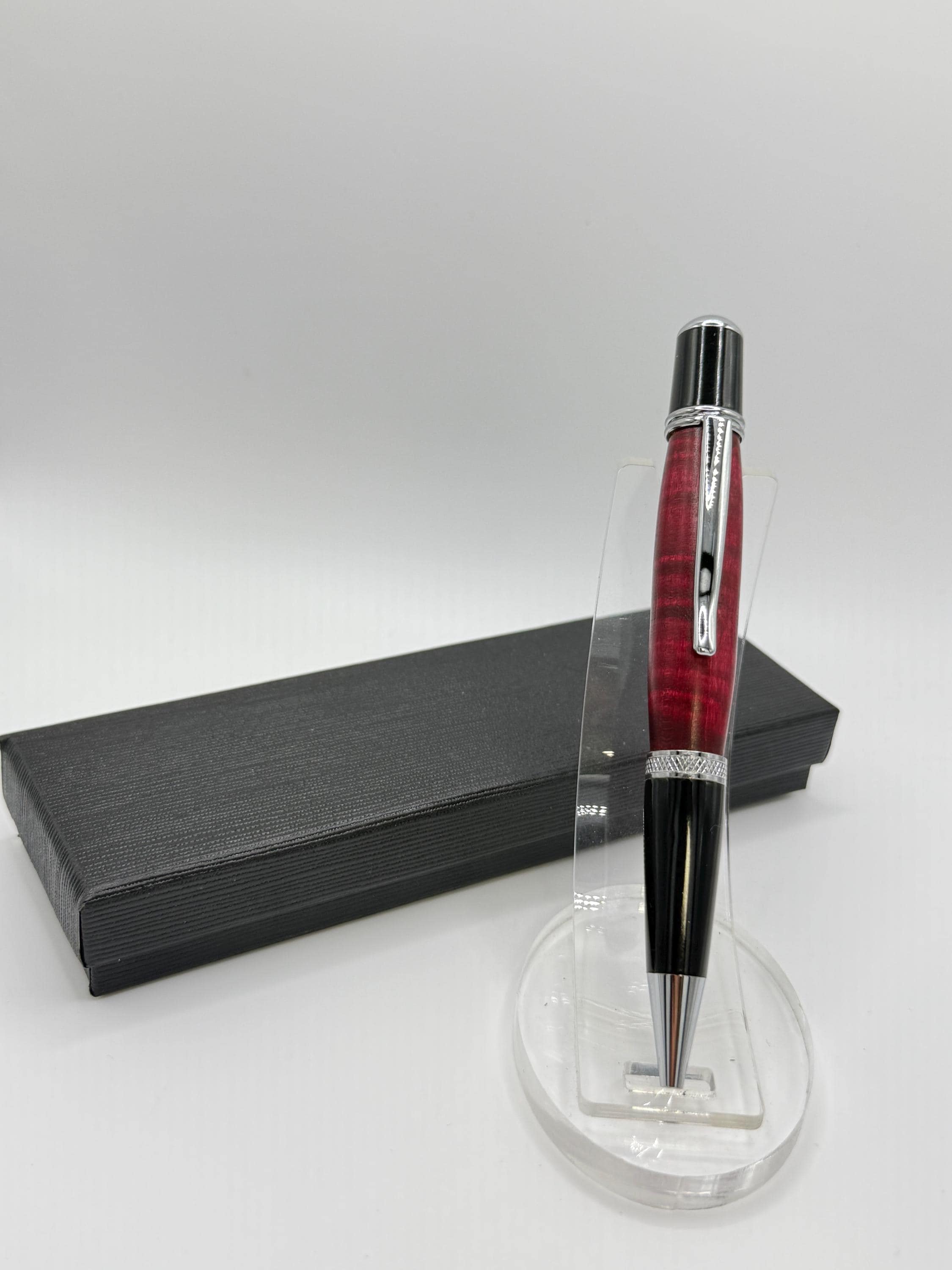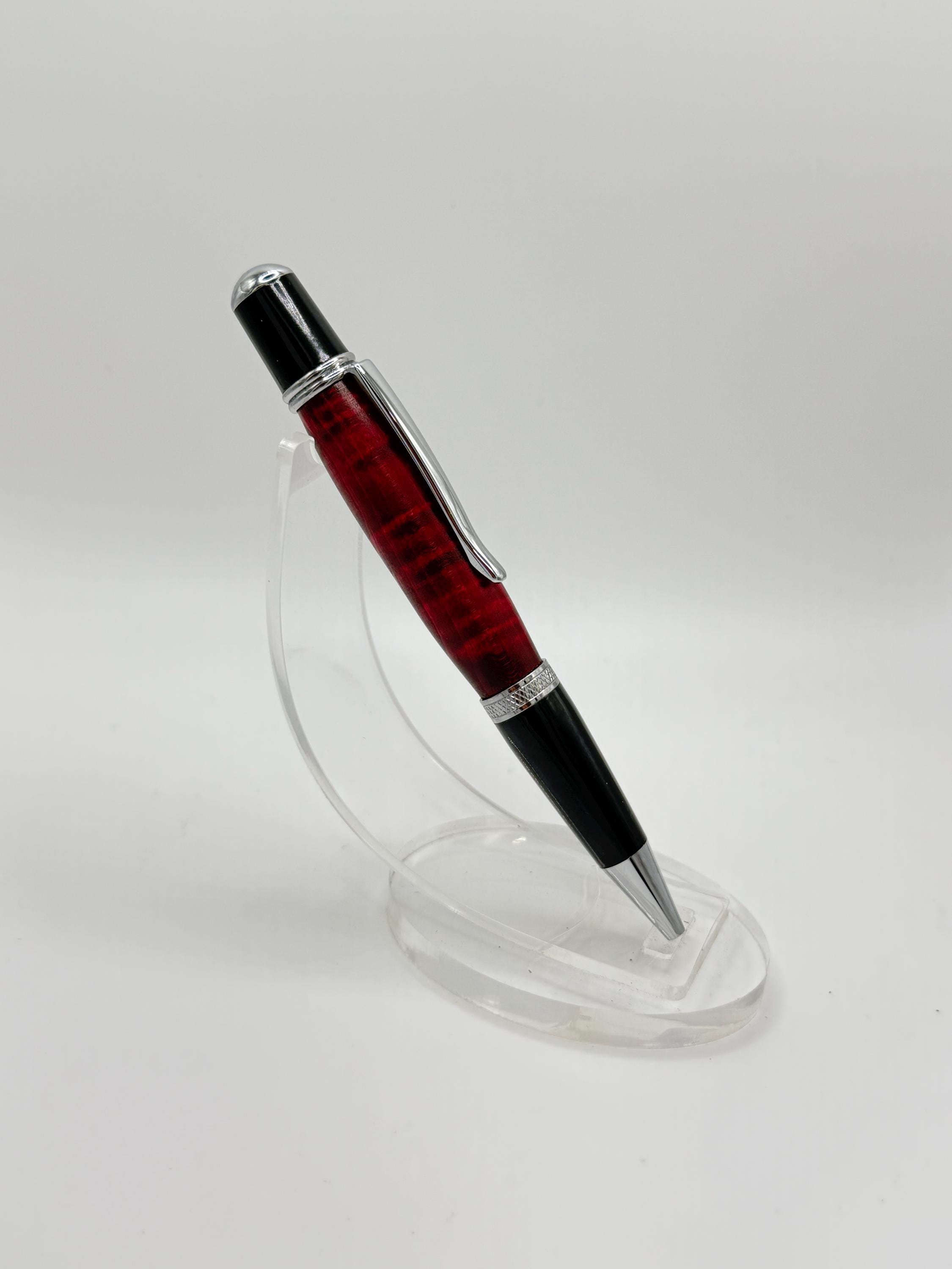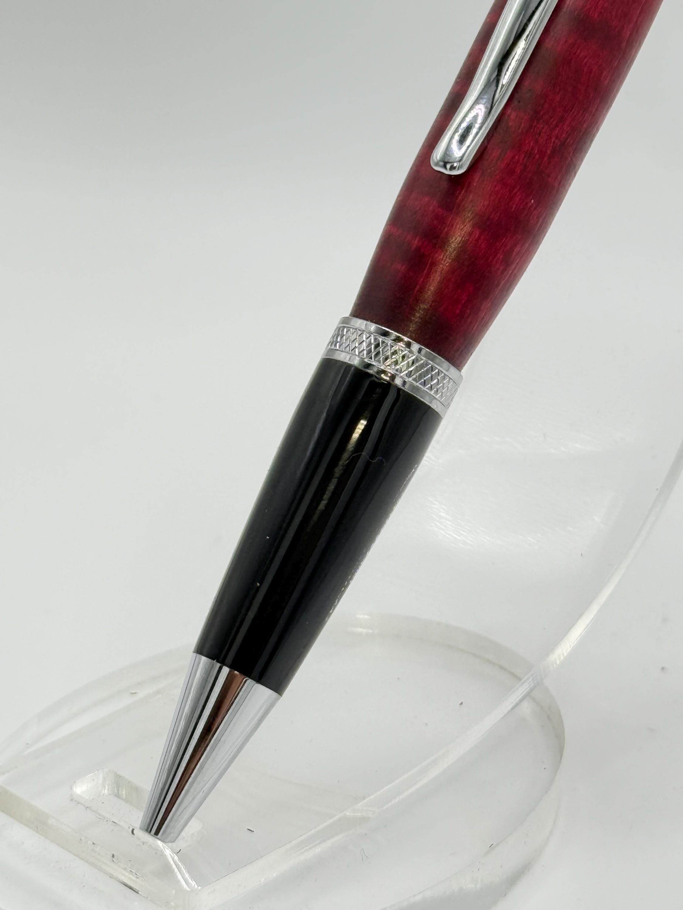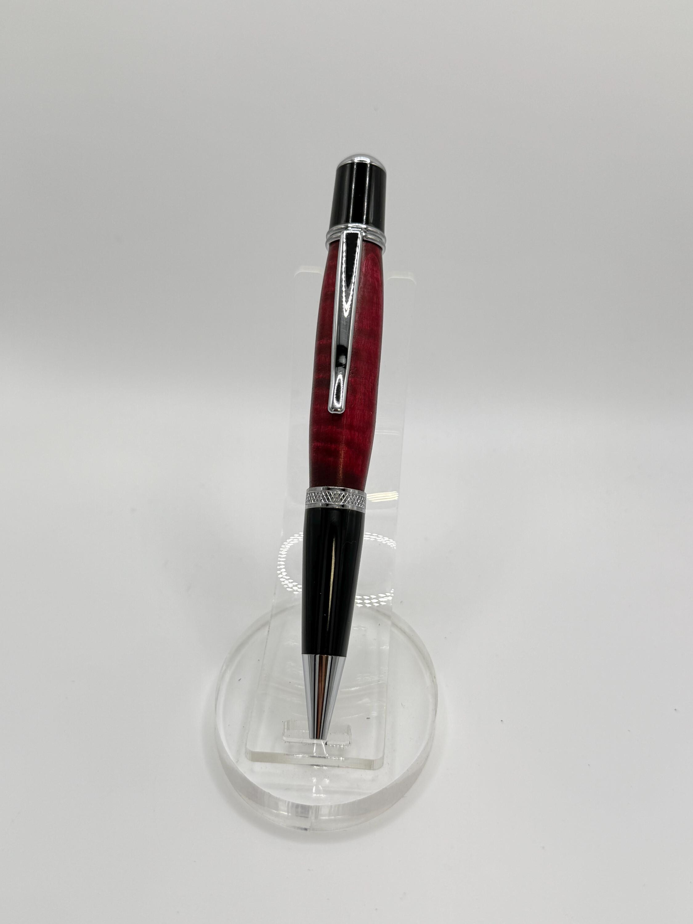 One-of-a-kind Red Stained Curly Maple Wood Executive Pen.