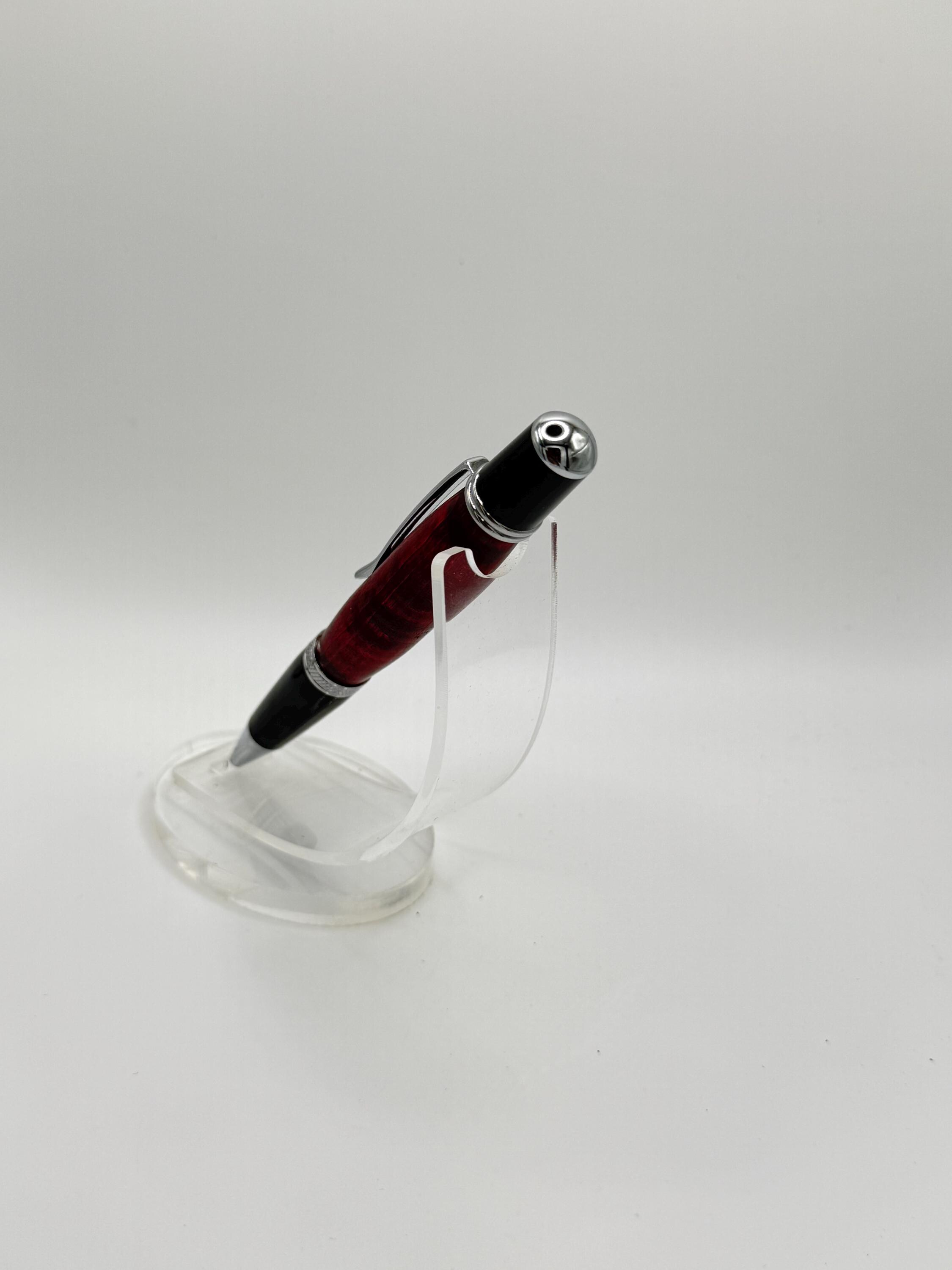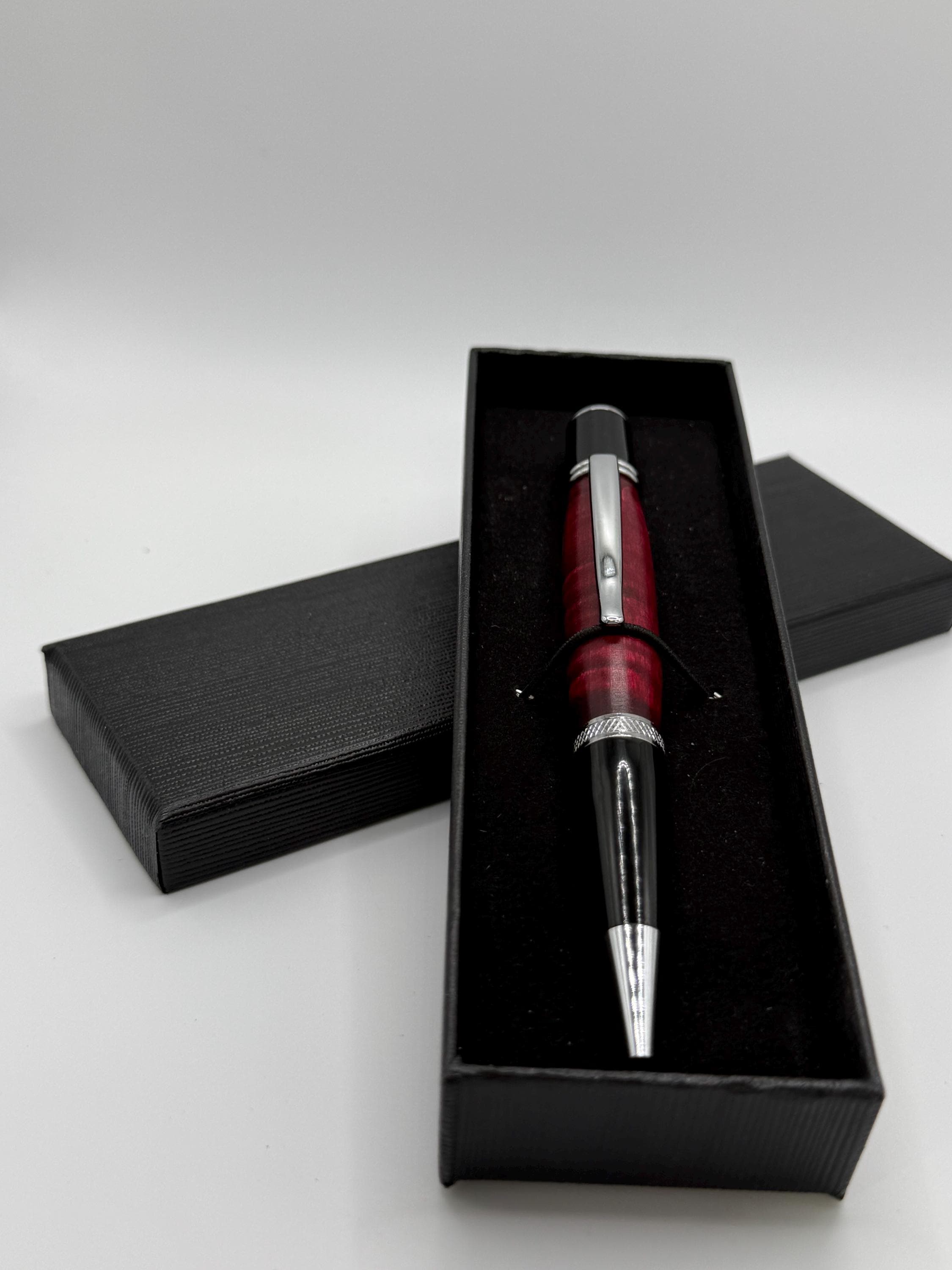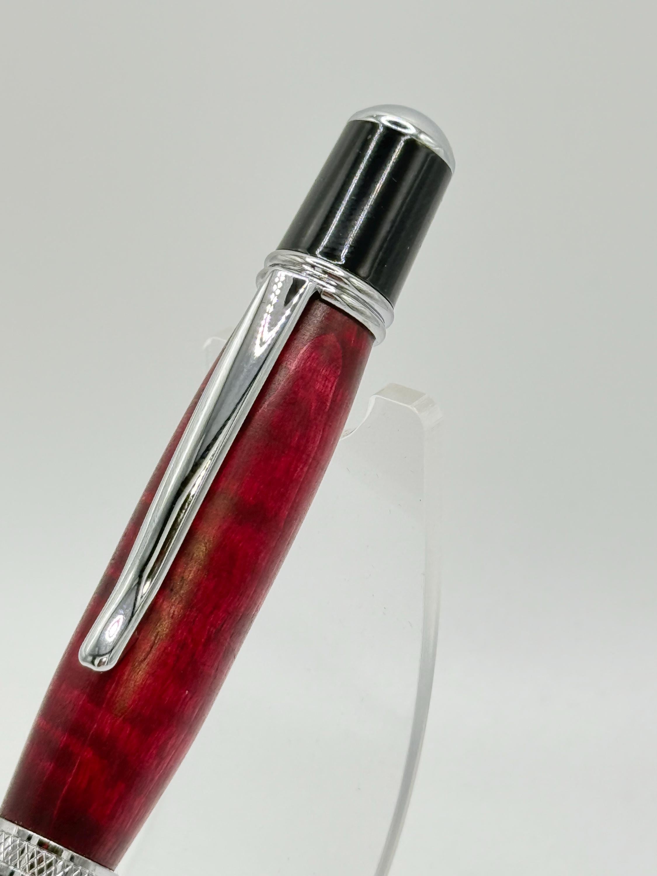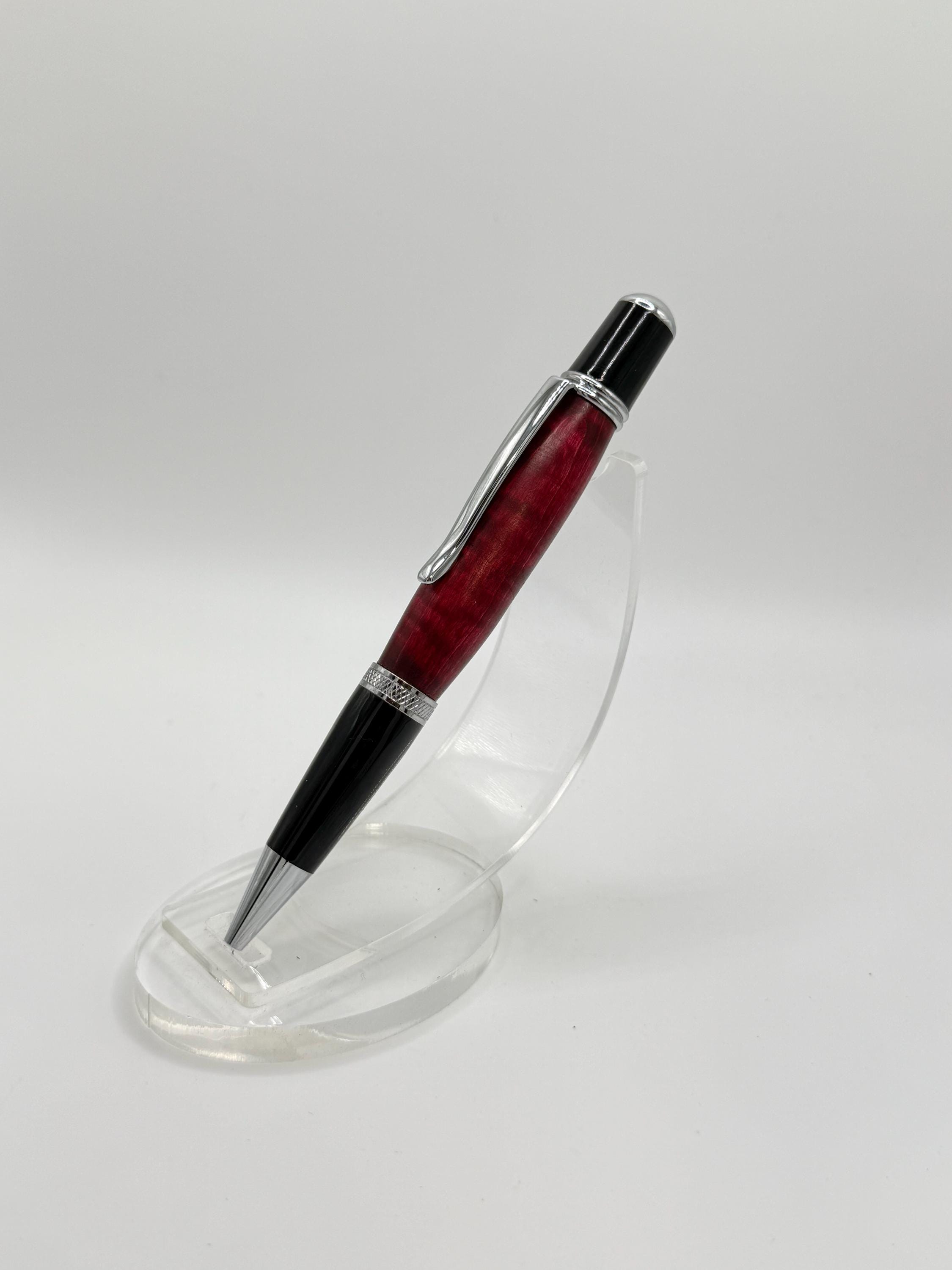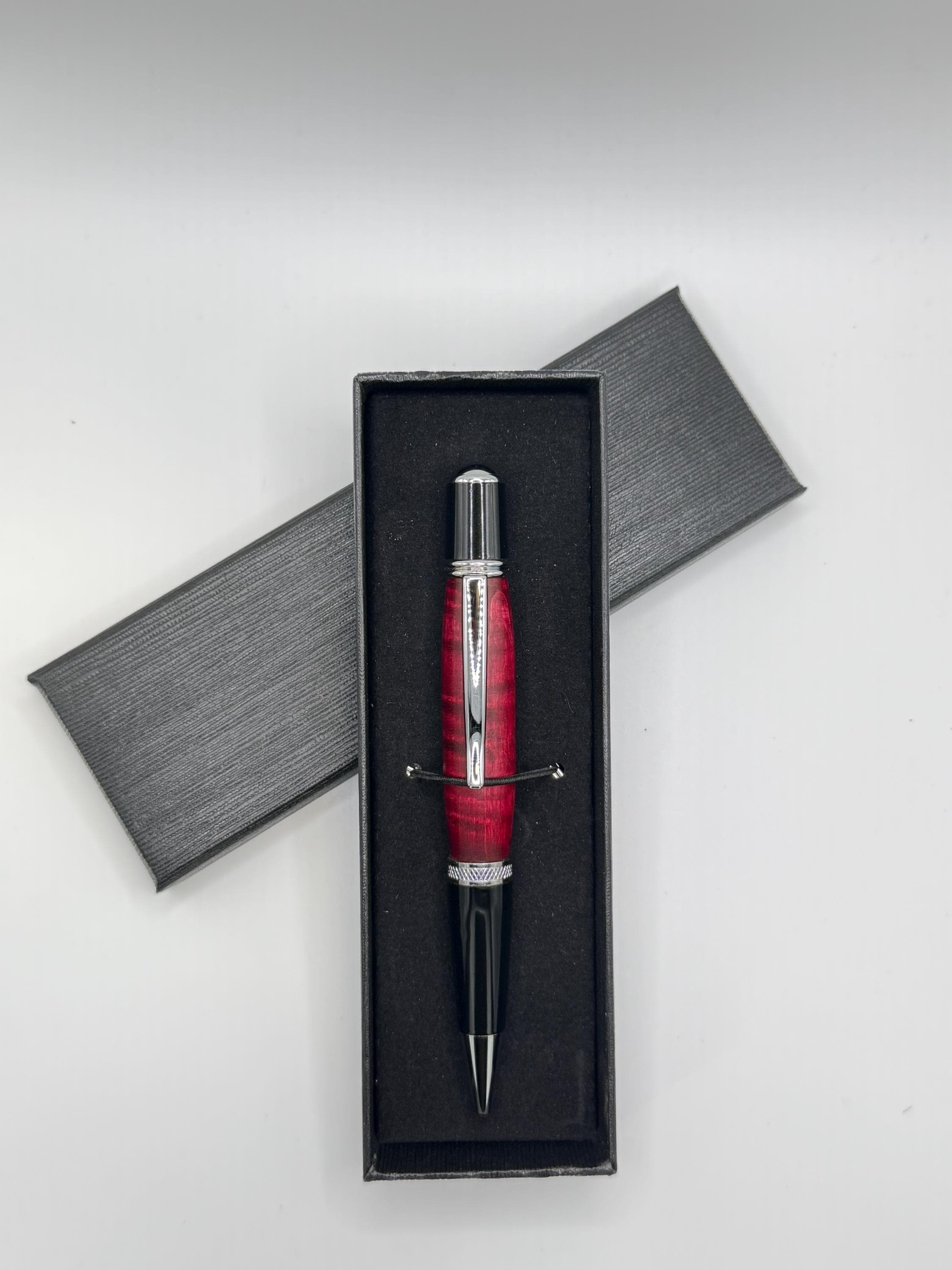 One-of-a-kind Red Stained Curly Maple Wood Executive Pen.
